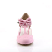 Additonal Description: . 3"" (7.5cm) Kitten Heel Round Toe Wingtip T-Strap Pump with Bow & Bow Charm Detail