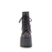 Additonal Description: 3 1/2" Chunky Heel, 2 1/4" Platform. 5" (127mm) Chunky Heel, 3" (75mm) Platform Lace-Up Ankle Boot, Metal Back Zip Closure