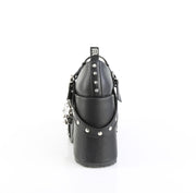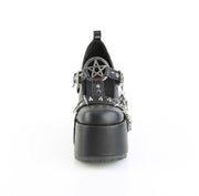 Additonal Description: 5" Chunky Heel, 3" Platform. 5" (127mm) Chunky Heel, 3" (76mm) Platform Eyelet T-Strap Maryjane Featuring Pentagram Center, Silver Spike Studs on Strap and Heel, Hanging Chain and Various Charms Details