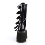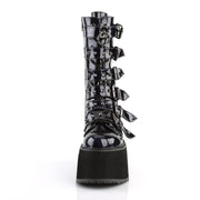 Additional Info: 3 1/2" (90mm) Platform Lace-Up Front Mid-Calf Boot Featuring 6 Cone-Studded Buckle Straps, Inner Side Metal Zip Closure.