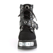 SCENE 53 Black Vegan Leather-Fishnet Fabric Platform Lace-Up Ankle Boot