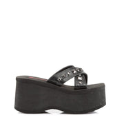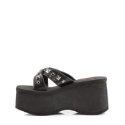 Additonal Description: 3 1/2" EVA Platform. 3 1/2" (8.9cm) Platform Sandal Featuring Gun Metal Pyramids & Studding on Upper