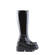 Additonal Description: 4 1/2" Platform. 4 1/2" (11.4cm) Stacked Wedge Platform Knee High Boot Full Inner Side Zip Closure