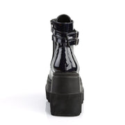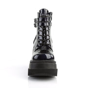 Additonal Description: 4 1/2" Stacked Wedge Platform. 4 1/2" (114mm) Wedge Platform Lace-Up Front Ankle Boot w/ Double Buckled Ankle Straps, Inner Side Zip Closure