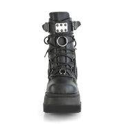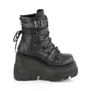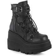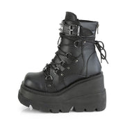 SHAKER 60 Black Vegan Leather Wedge Platform Lace-Up Ankle Boot, Back Metal Zipper