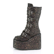 Additonal Description: 5 1/2" Platform. 5 1/2" (140mm) Platform Mid-Calf Boot Featuring 5 Buckle Straps w/ Heart Shaped Metal Plates at Center, Back Metal Zip Closure