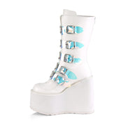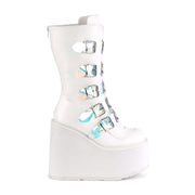 Additonal Description: 5 1/2" Platform. 5 1/2" (140mm) Platform Mid-Calf Boot Featuring 5 Buckle Straps w/ Heart Shaped Metal Plates at Center, Back Metal Zip Closure