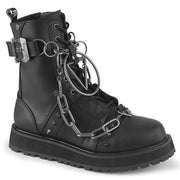 Additonal Description: 1 1/2" Platform. 1 1/2" (38mm) Platform Lace-Up Front Ankle Boot Featuring Outer Buckle Strap and Screw Studs, Spike Studs, Various O-Ring, D-Ring & Triangle Rings W/ Hanging Chain Details, Inside Metal Zip Closure