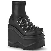 Additonal Description: 6" Wedge Platform. 6" (152mm) Wedge Platform Stretch Ankle Boot Featuring O-Rings, Spike Studs Eyelets & Studded Strappy Details on Vamp W/ Hanging Skull Detail on Toe, Inner Side Metal Zip Closure Straps, Back Metal Zip Closure