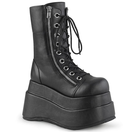 BEAR 265 Black Vegan Leather Tiered Platform Lace-Up Mid-Calf Boot, Inner & Outer ZipDetails: 4 1/2 Inch Platform Brand: Demonia.