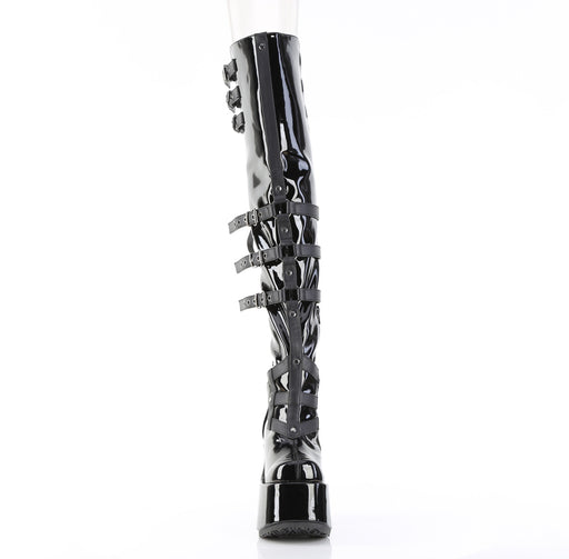 5 Inch Chunky Heel, 3 Inch Platform Back Lace Thigh-High Boot, Inside Zip