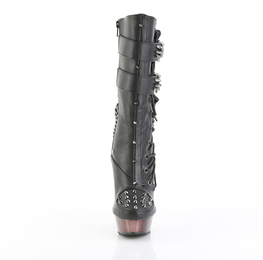 CAMEL 65 Black Patent Platform Lace-Up Mid-Calf Boot, Back ZipDetails: 5 Inch Chunky Heel, 3 Inch Platform Brand: Demonia.