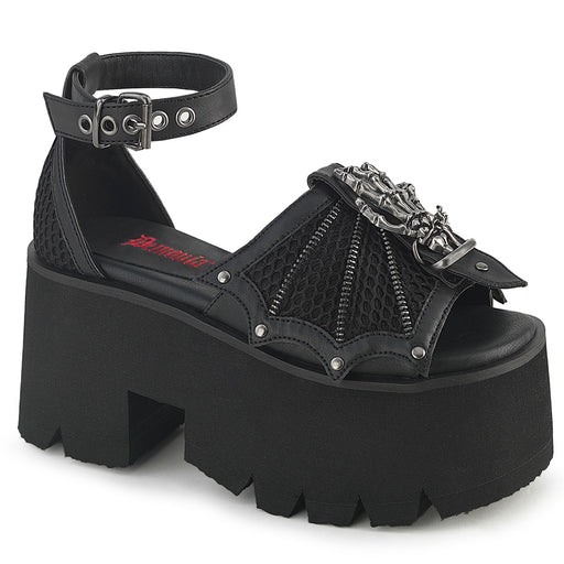 ASHES 100 Black Vegan Suede-Black Vegan Leather Cut Out Platform Ankle Boot, Front ZipDetails: 3 1/2 Inch Chunky Heel, 2 1/4 Inch Platform Brand: D...