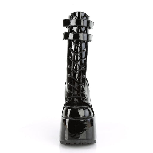 BEAR 265 Black Patent Tiered Platform Lace-Up Mid-Calf Boot, Inner & Outer ZipDetails: 4 1/2 Inch Tiered Platform Brand: Demonia.