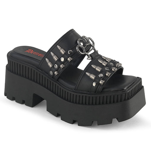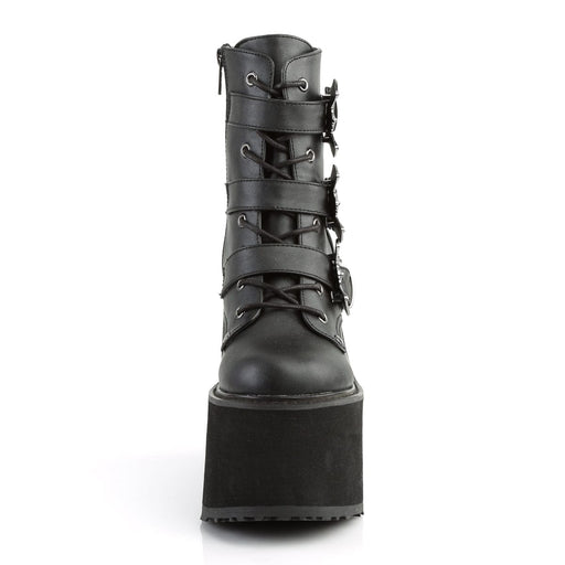 SWING 103 Black Vegan Leather Platform Lace-Up Ankle Boot with 3 Buckle Straps, Side ZipDetails: 5 1/2 Inch Platform Brand: Demonia.