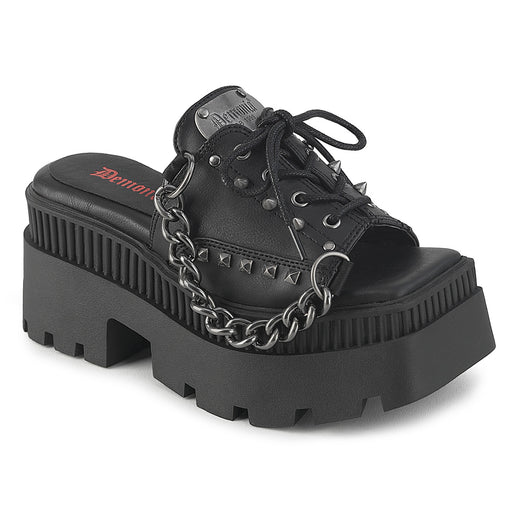 LILITH 152 Black Vegan Leather Platform Lace-Up Ankle Boot, Side ZipDetails: 1 1/4 Inch Platform Brand: Demonia.