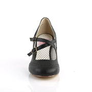 FLAPPER 35 Black Faux Leather Kitten Heel Round Toe Criss-Cross Mary Jane Pump