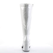 Additonal Description: 3" Heel. 3" (7.6cm) Block Heel Stretch Patent Gogo Plus Size Boot, Full Inner Side Zip Closure