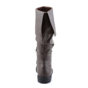 ROBINHOOD 100 Brown Distressed Pu Flat Heel, Cuffed Knee High Renaissance Boot, Side Zip