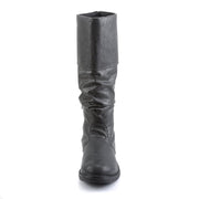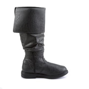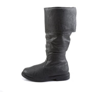 ROBINHOOD 100 Black Distressed Pu Flat Heel, Cuffed Knee High Renaissance Boot, Side Zip