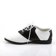Additonal Description: 3/4" Heel. Front Lace Up Flat Saddle Shoes for Retro & Grease Costumes