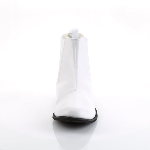 TROOPER 12 White Pu Flat Heel Pointed Toe Men's Pull-on Chelsea Ankle BootDetails: 1 Inch Flat HeelBrand: Funtasma.