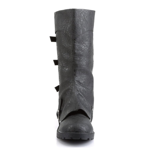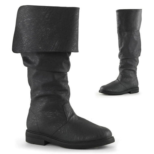 ROBINHOOD 100 Black Distressed Pu Flat Heel, Cuffed Knee High Renaissance Boot, Side ZipDetails: 1 Inch Flat HeelBrand: Funtasma.