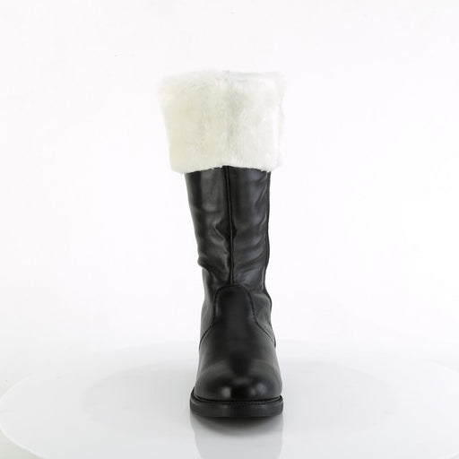 SANTA 100 Black Pu-White Faux Fur Flat Heel, Santa Boot with Fur CuffDetails: HeelBrand: Funtasma.