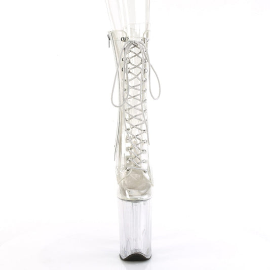 SPECTATOR-3019 White Faux Leather/Clear-Silver Chrome