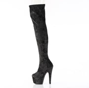Additonal Description: 7" Heel, 2 3/4" PF. 7" (178mm) Heel, 2 3/4" (70mm) Platform Stretch Thigh High Boot Featuring Featuring Stretch Shimmering Fabric Uppper and Fully Wrapped Matching Platform Bottom, Full Length Inner Side Zip Closure