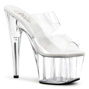 Additonal Description: 7" Heel, 2 3/4" Platform. 7" (17.8cm) Stiletto Heel, 2 3/4" (7cm) Platform Slide Featuring Two-Band Clear Straps