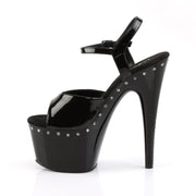 Additonal Description: 7" Heel, 2 3/4" Platform. 7" (17.8cm) Stiletto Heel, 2 3/4" (7cm) Ankle Strap Sandal Featuring One Line Rhinestone on Platform & Stiletto Heel