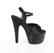 Additonal Description: 7" Heel, 2 3/4" Platform. 7" (178mm) Heel, 2 3/4" (70mm) Platform Ankle Strap Sandal Featuring Shimmering Fabric Upper and Fully Wrapped Matching Platform Bottom