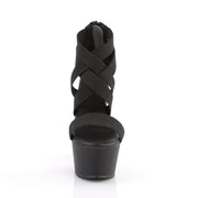 ASPIRE 669 Black Elastic Band-Faux Leather/Black Matte Platform Criss Cross Sandal, Back Zip