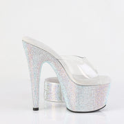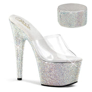 Additonal Description: 7" Heel, 2 3/4" Platform. 7" (178mm) Heel, 2 3/4" (70mm) Platform Slide Featuring Rhinestones Encrusted on the Entire Platfrom Bottom and 1 3/4" (45mm) Adjustable Rhinestone Ankle Cuff