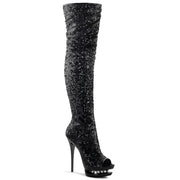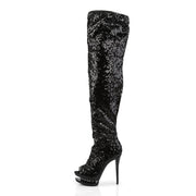 BLONDIE R 3011 Black Sequins/Black Dual Platform Open Toe Thigh Boot