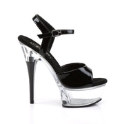CAPlatformIVA 609 Black Patent/Clear Ankle Strap Platform Sandal with Rhinestone On Heel