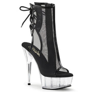 DELIGHT 1018MSH Black Patent -Mesh/Clear Platform Open Toe/Heel Mesh Ankle Boot