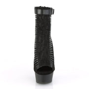 Additonal Description: 6" Heel, 1 3/4" Platform. 6" (152mm) Heel, 1 3/4" (45mm) Platform Open Toe Strappy Ankle Bootie w/ Buckled Ankle Strap & Lace Overlay Detail, Back Zip Closure