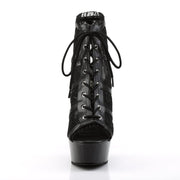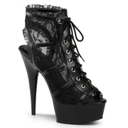 DELIGHT 696LC Black Mesh-Lace/Black Platform Lace Up Open Toe Open Back Bootie
