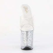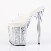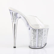 Additonal Description: 8" Heel, 4" Platform. 8" (20.3cm) Stiletto Heel, 4" (10.2cm) Platform Slide Featuring Multi Glitter-filled Platform