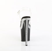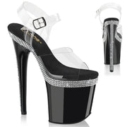 8 Inch Heel, 4 Inch Platform Ankle Strap Sandal with Rhinestone Lines