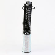 11 Inch Heelless, 6 1/4 Inch Platform Lace-Up Ankle Boot with Rhinestone , Side Zip