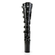 Additonal Description: 9" Heel, 5 1/4" Platform. 9" (22.9cm) Heel, 5 1/4" (13.3cm) Platform Front Lace-Up Knee Boot with Multi Buckled Straps Full Inner Side Zip Closure. **WARNING: Extreme High Heels. Not Recommended for Walking or Dancing.
