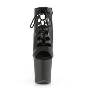 FLAMINGO 800 20 Black Faux Leather/Black Matte Platform Open Toe/Heel Front Lace Up Ankle Bootie
