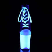 Additonal Description: 8" Heel, 4" Platform. 8" (200mm) Heel, 4" (100mm) Platform Lace Up Front Canvas Sneaker Featuring Blacklight Reactive Platform Bottom, Full Inner Side Zip Closure