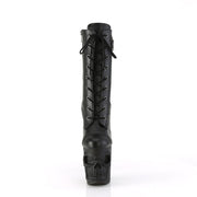 Additonal Description: 8" Finger Bone Heel, 4" Skull Platform. 8" (200mm) Finger Bone Heel, 4" (100mm) Skull Sculpted Platform Lace-Up Front Mid Calf Boot Featuring Dual Back Buckle Straps & Outside Hidden Zip Closured Pocket, Inner Side Metal Zip Closure