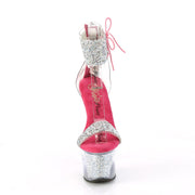 Additonal Description: 7" Heel, 2 3/4" Platform. 7" (178mm) Heel, 2 3/4" (70mm) Platform Close Back Ankle Cuff Sandal w/Side Lacing Featuring Silver Multi Rhinestone Embellished Ankle Cuff & Toe Strap and Inserted in the Platform Bottom, Back Zip Closure