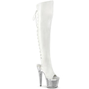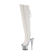 Additonal Description: 7" Heel, 3" Platform. 7" (178mm) Heel, 3" (76mm) Textured PF Open Toe/Heel Lace-Up Back Over-The-Knee Boot Featuring Chrome Plated Platform Bottom,Full Length Inner Side Zip Closure.