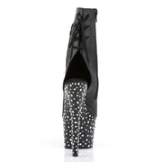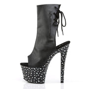 Additonal Description: 7" Heel, 2 3/4" Platform. 7" (17.8cm) Heel, 2 3/4" (7cm) Platform Open Toe/Heel Lace-Up Back Ankle Boot with Hidden Zip Pocket Featuring Multi-Size Rhinestone Encrusted on the Entire Bottom, Inner Side Zip Closure